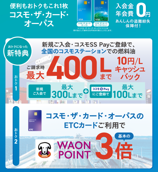 ガソリン代節約!最適なカードはイオンカードか?コスモオーパスか?