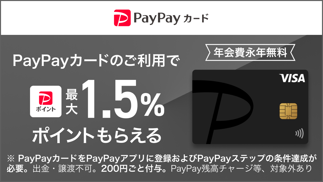 ※ご利用金額200円(税込)ごとに最大1.5%のPayPayポイントが貰える。